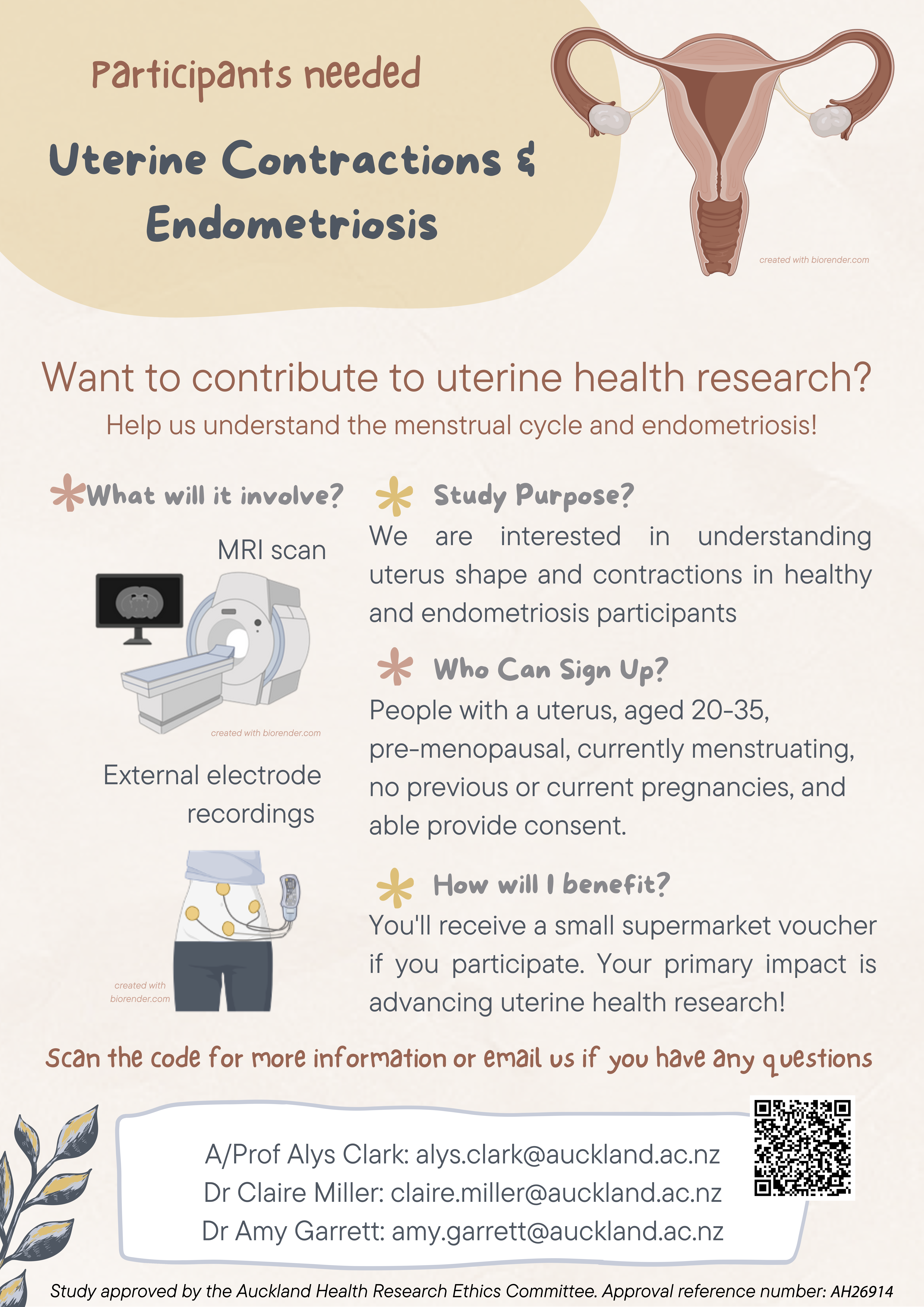 Hi, my name is Claire Miller and I am an applied mathematician in the area of computational biology. Currently, I am an Aotearoa Fellow at the Auckland Bioengineering Institute, University of Auckland, New Zealand developing spatiotemporal mathematical models to better understand endometriosis onset and early growth. In this work I focus on agent-based modelling and compartmental methods to answer research questions such as ‘how do cell behaviours affect lesion invasion?’ and ‘what is the immune response to the disease?’.