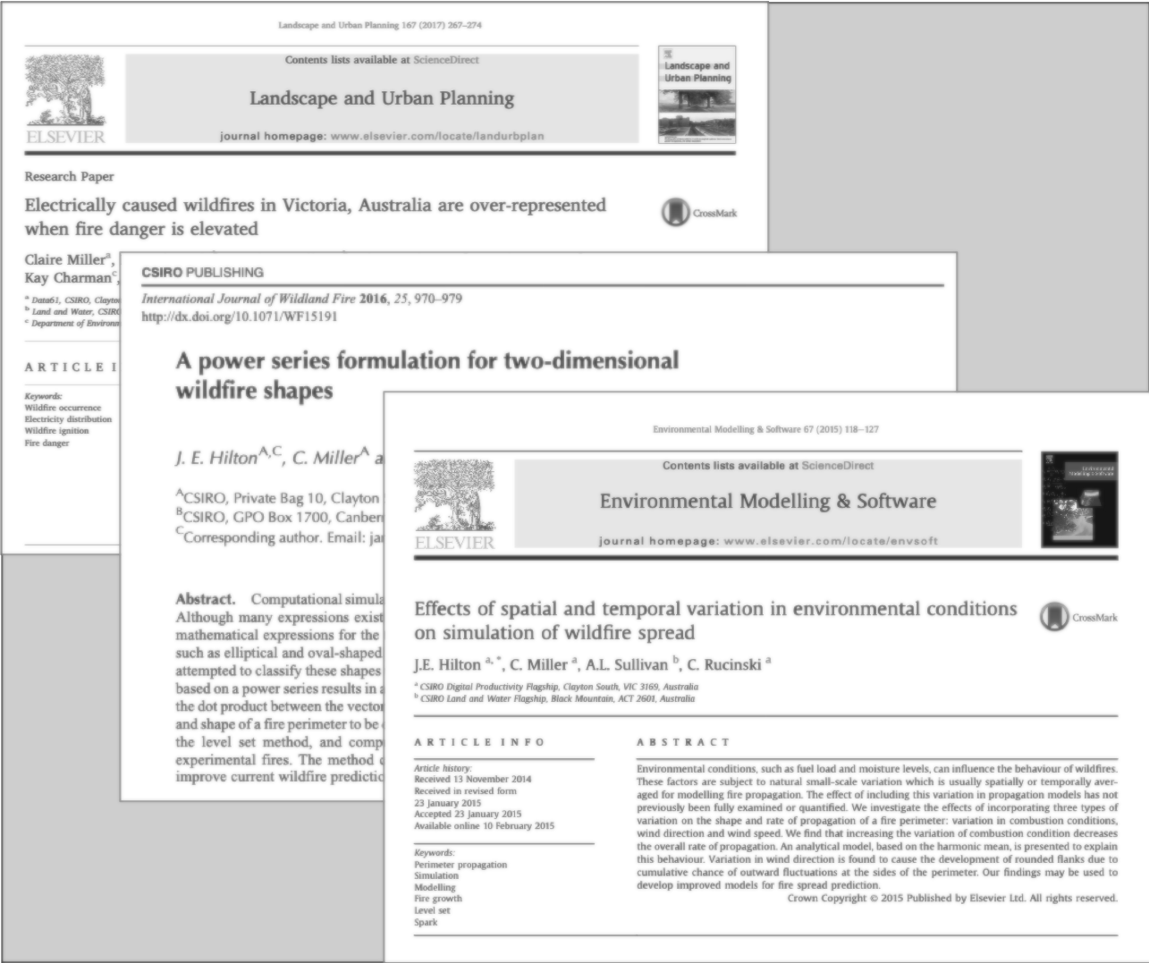 Claire Miller, Matt Plucinski, Alec Stephenson, Carolyn Huston, Kay Charman, Mahesh Prakash, Andrew Sullivan, Simon Dunstall. Electrically caused wildfires in Victoria, Australia are over-represented when fire danger is elevated. Landscape and Urban Planning 167:267-274 (2017).
